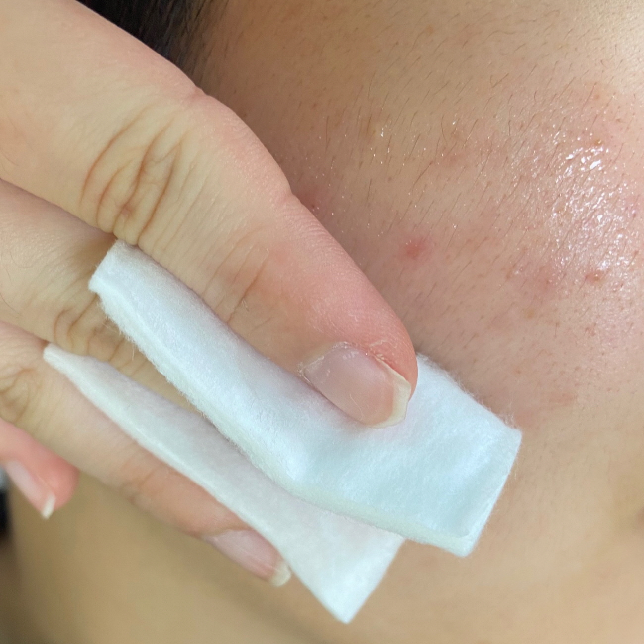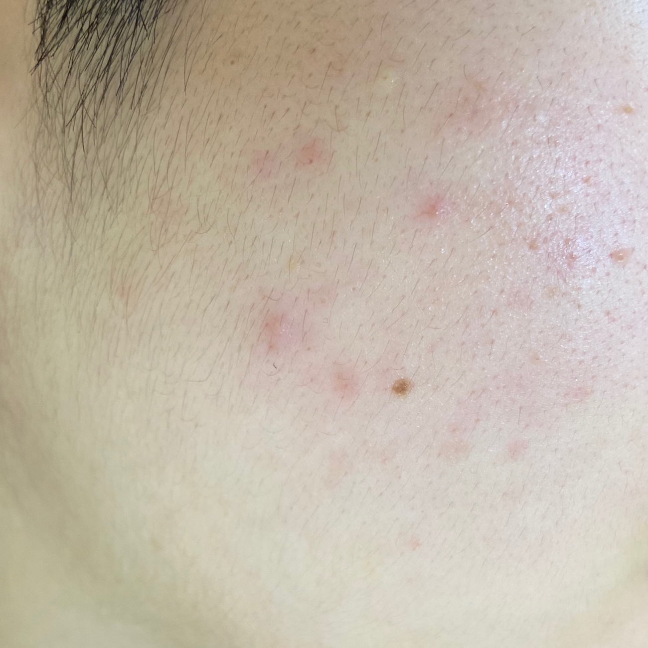 꽤 진정이 된 상태로, 피부결 자체는 좋아졌어요.
